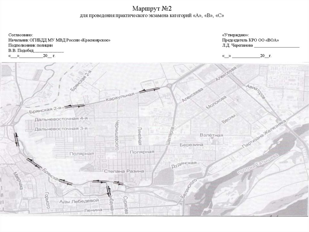 Маршрут №2для проведения практического экзамена категорий «А», «В», «С»