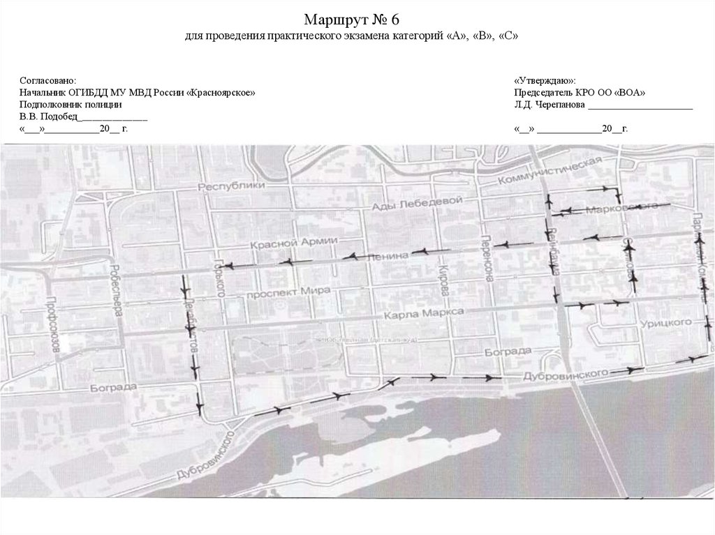 Маршрут № 6для проведения практического экзамена категорий «А», «В», «С»