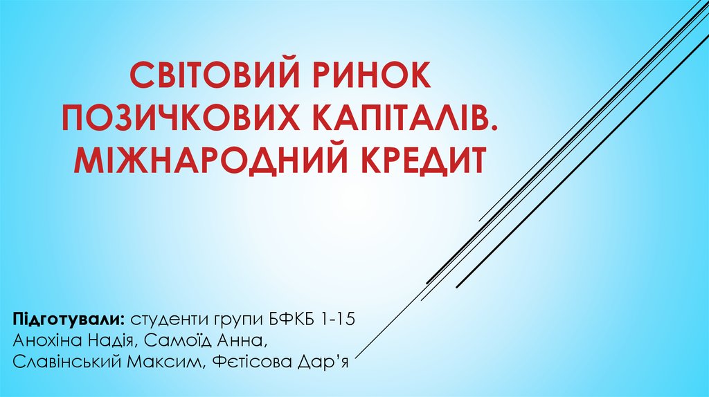 1. Світовий ринок позичкових капіталів. Міжнародний кредит