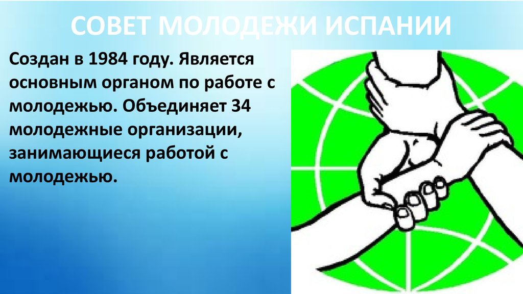 СОВЕТ МОЛОДЕЖИ ИСПАНИИСоздан в 1984 году. Является