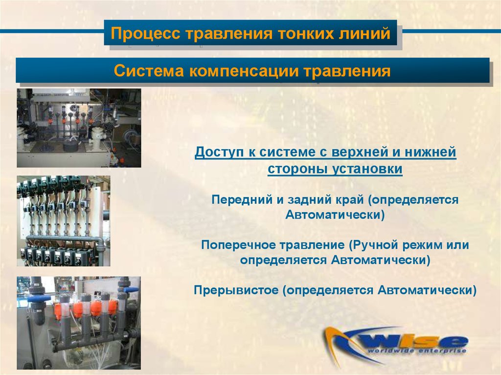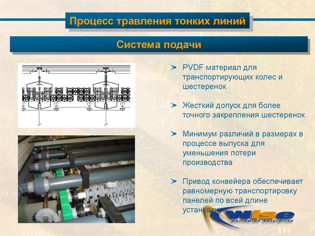 Процесс травления тонких линийСистема подачи на линиях мокрых процессов