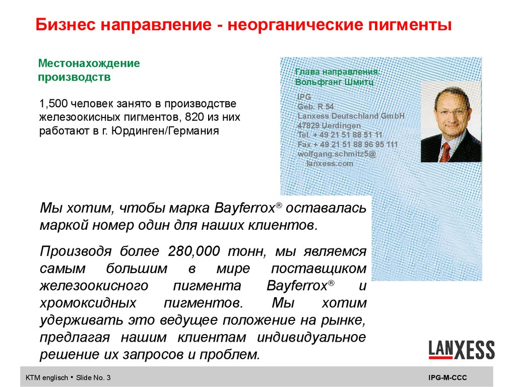IPG-M-CCC2. Химические полупродукты – Неорганические пигменты Глава бизнес направления:Вольфганг Шмитц