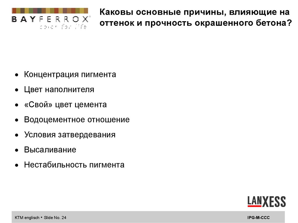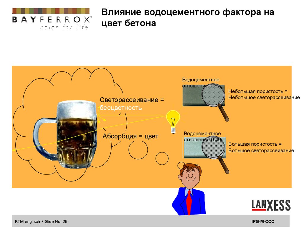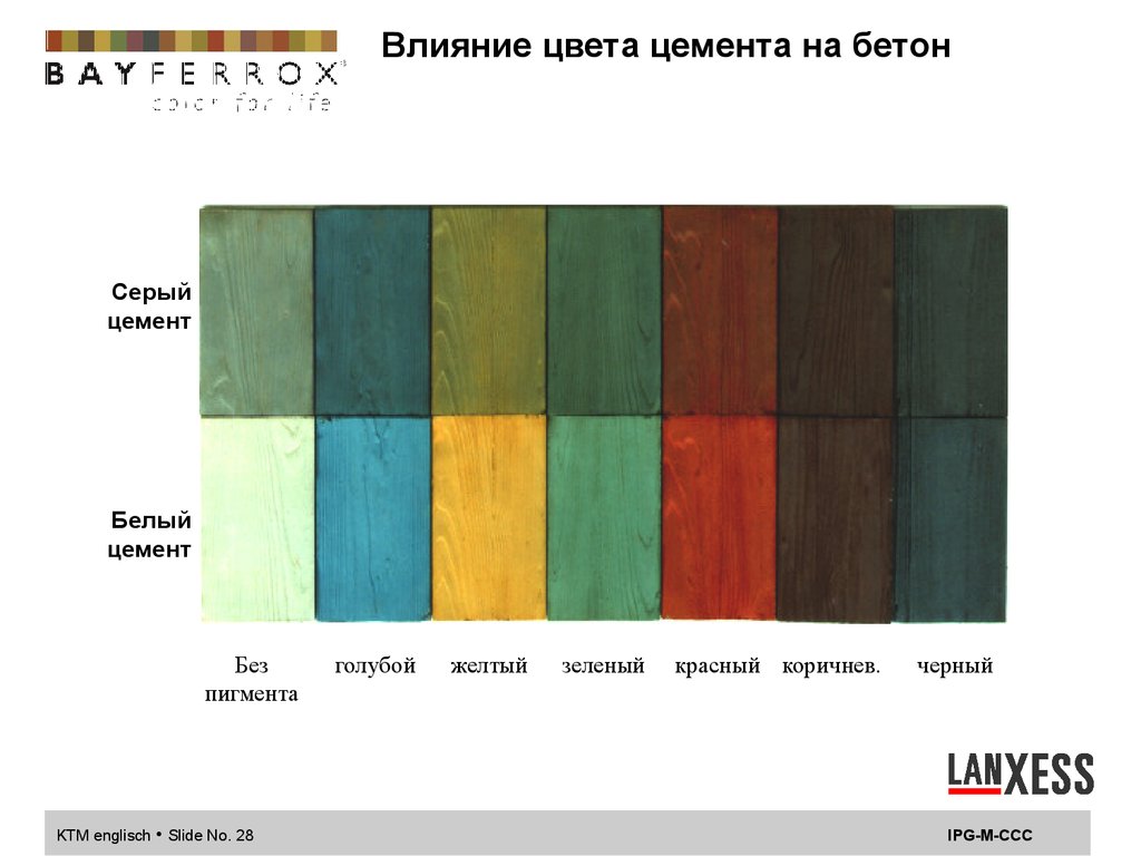 Влияние водоцементного фактора нацвет бетона