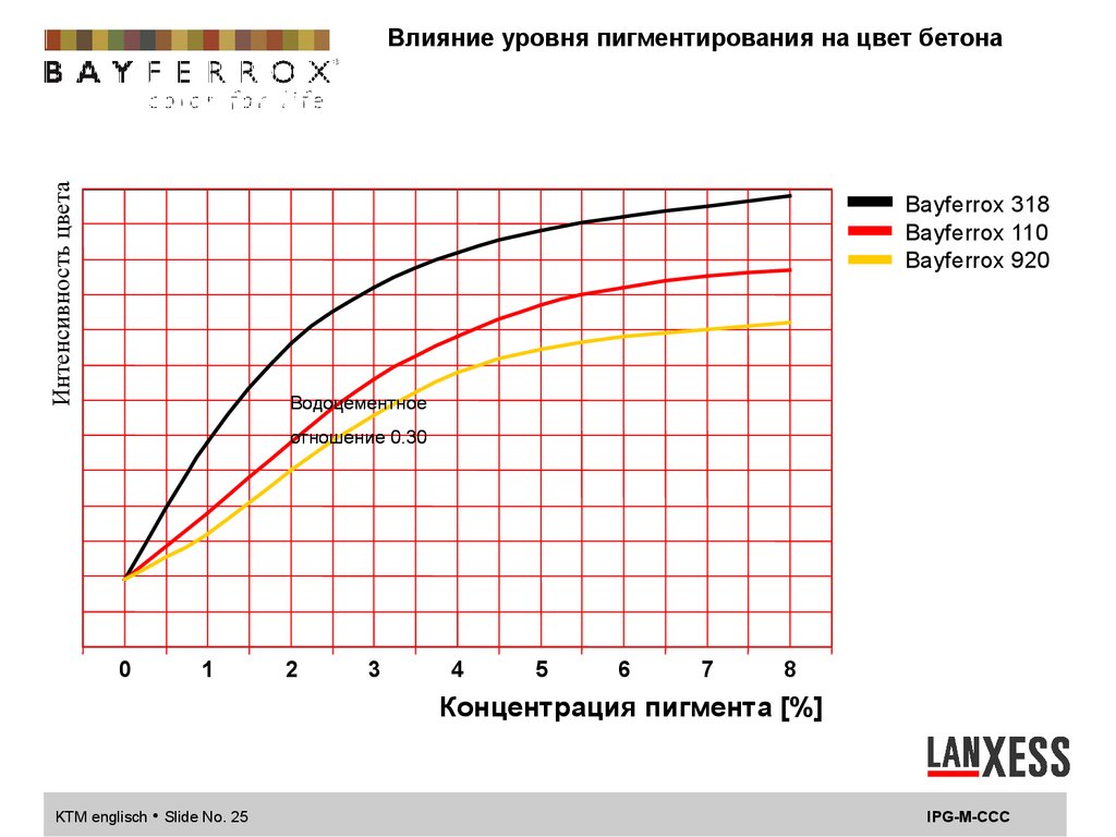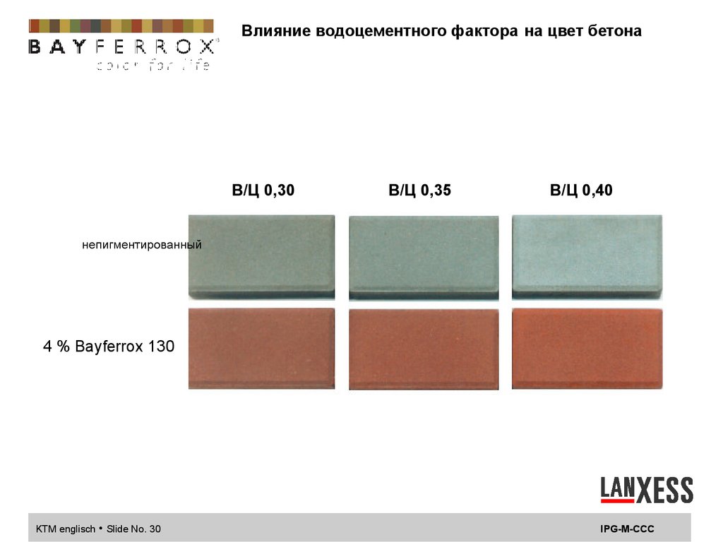 Влияние водоцементного фактора на цвет бетонаВ/Ц 0,30