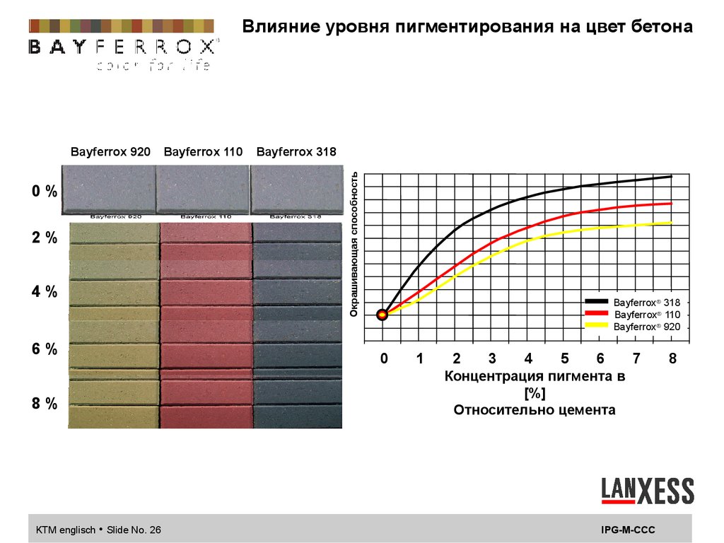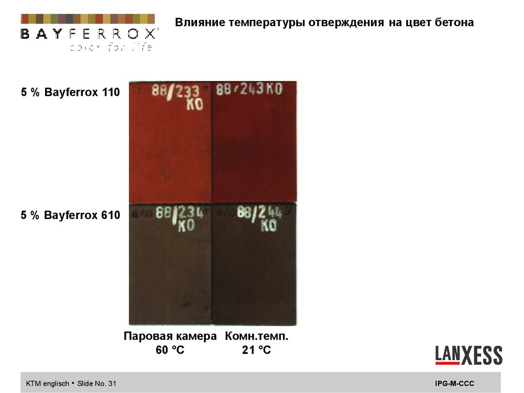 Влияние температуры отверждения на цвет бетона5 % Bayferrox 110
