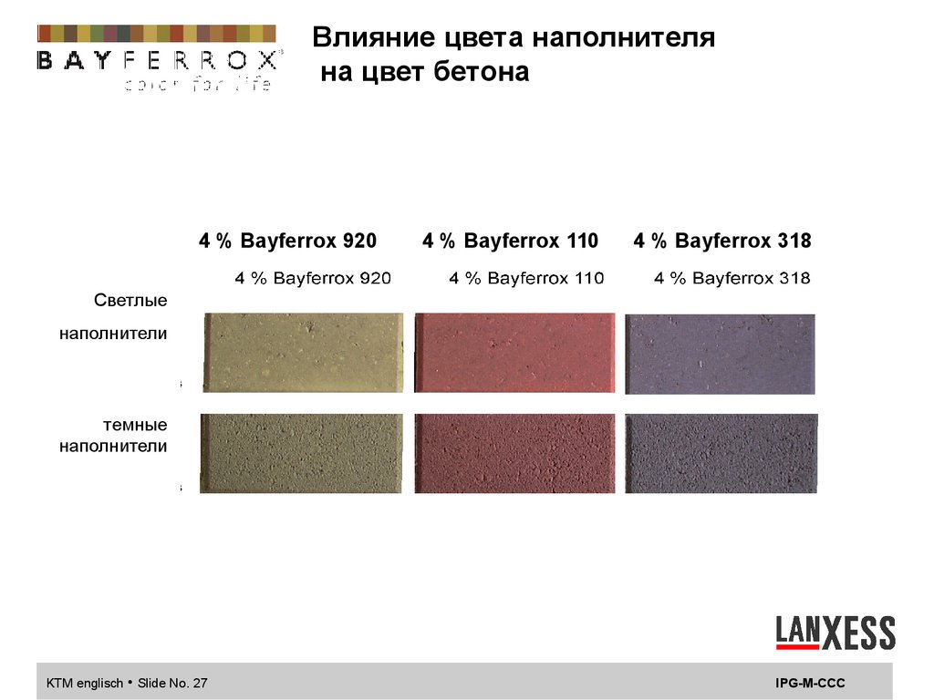 Влияние цвета наполнителяна цвет бетона