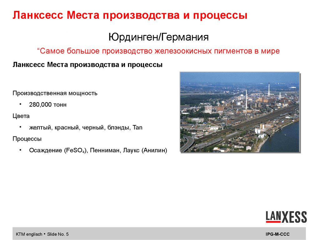 Ланксесс Места производства и процессыЮрдинген/Германия