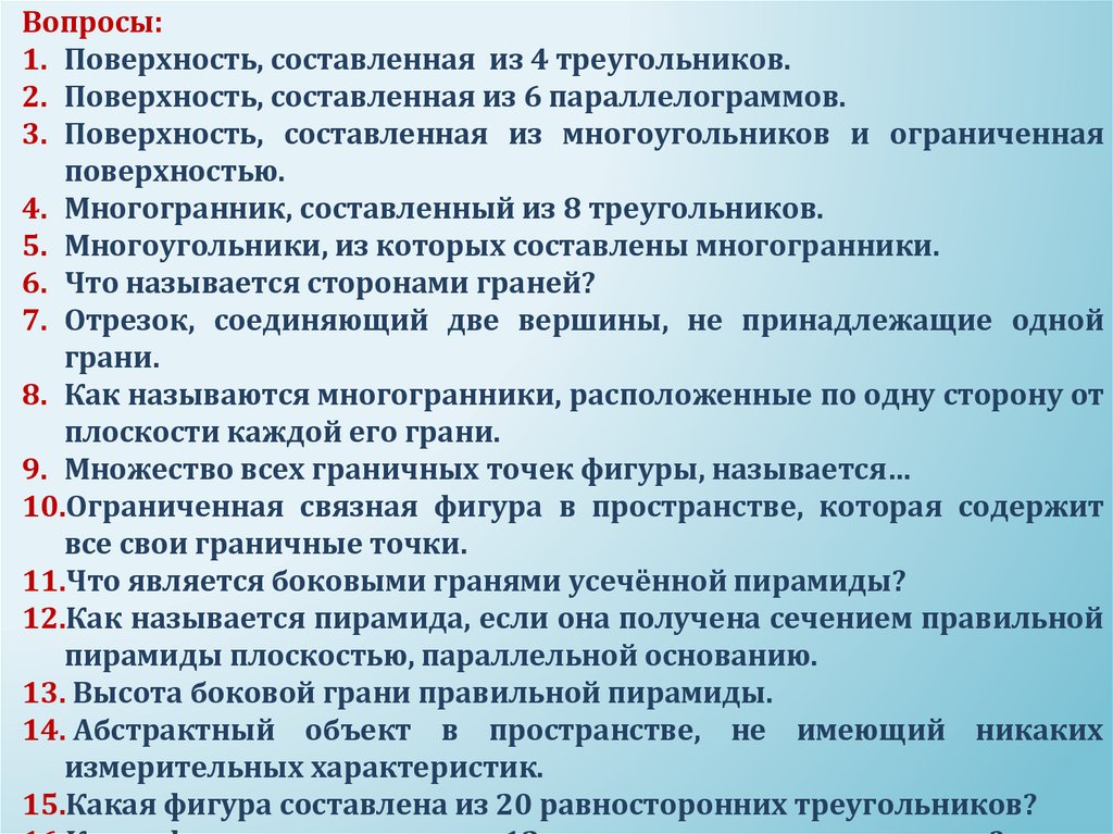 Вопросы:1. Поверхность, составленная из 4 треугольников.