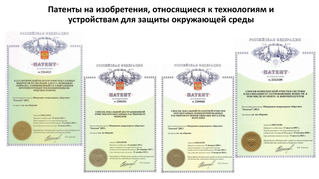 Патенты на изобретения, относящиеся к технологиям иустройствам для защиты окружающей среды