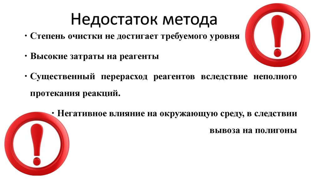Недостаток методаСтепень очистки не достигает требуемого уровня