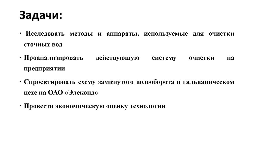 2. Цель: Обоснование оптимальной, с целью потребления ресурсов, внедрения системы замкнутого водооборота в гальваническом цехе на ОАО «Элеко