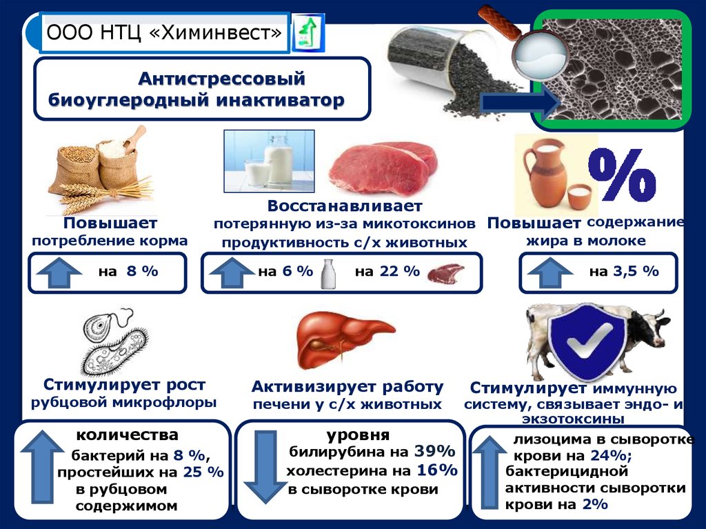 Антистрессовый биоуглеродный инактиватор для животноводства. ООО НТЦ«Химинвест»