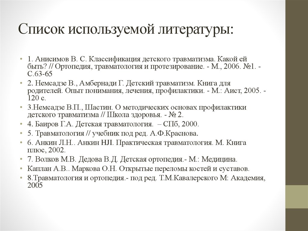 • 4. Баиров Г.А. Детская травматология. – СПб, 2000.