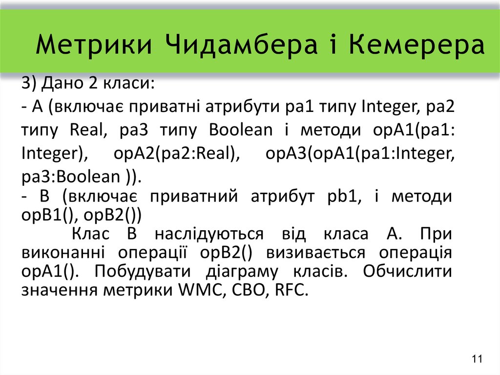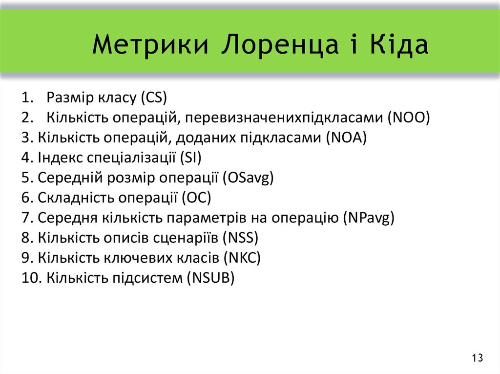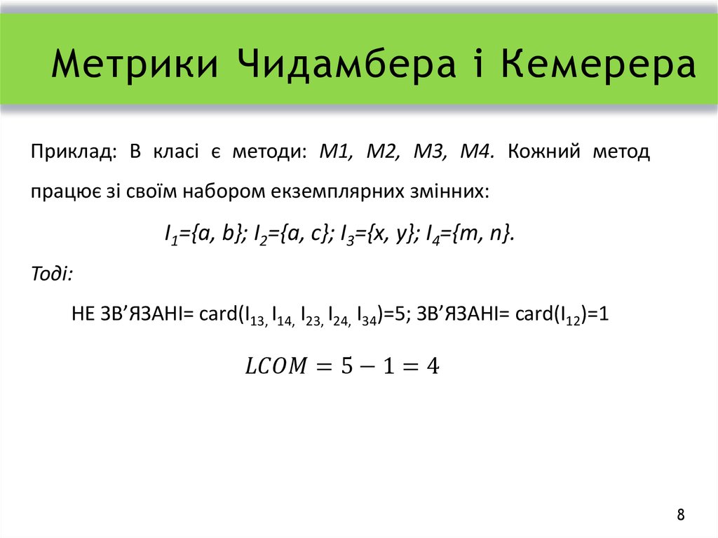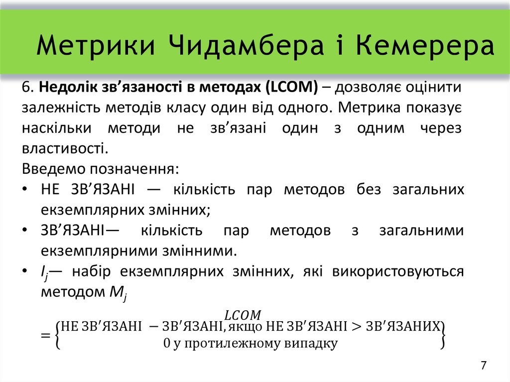 Метрики Чидамбера і Кемерера6. Недолік зв’язаності в методах (LCOM) – дозволяє оцінити