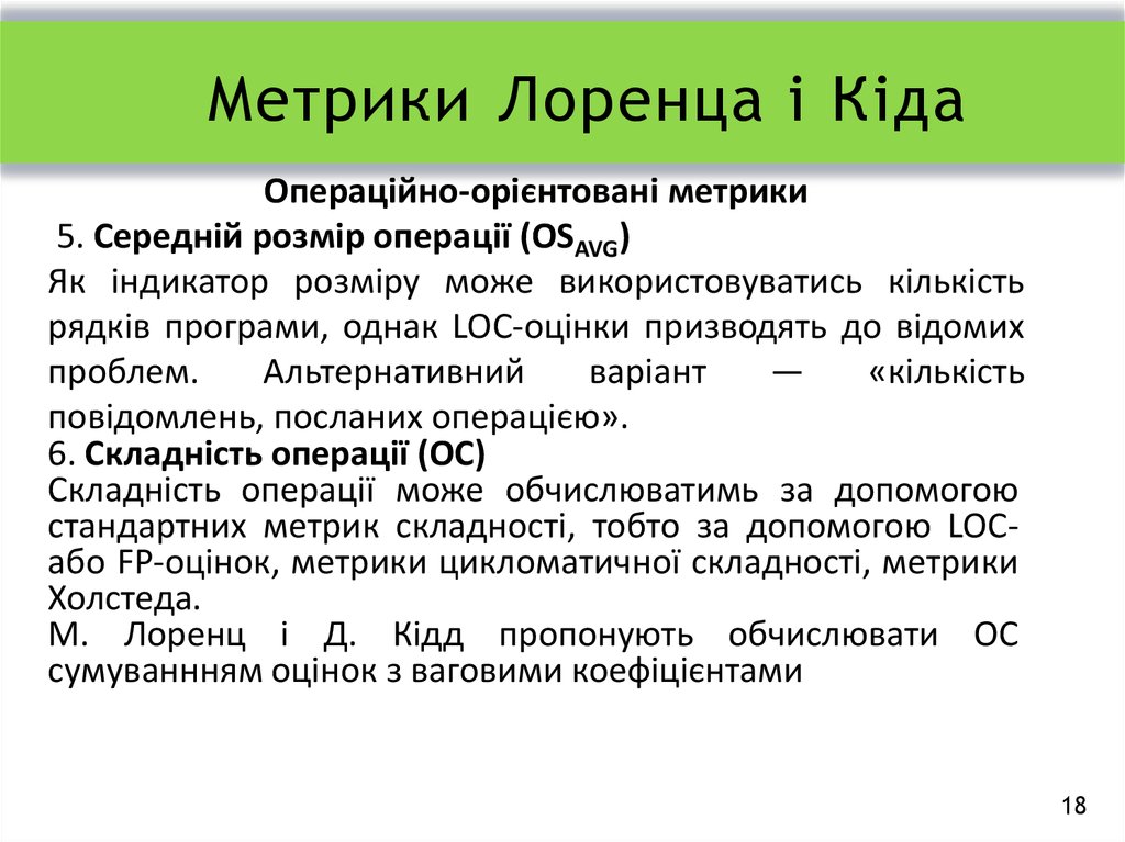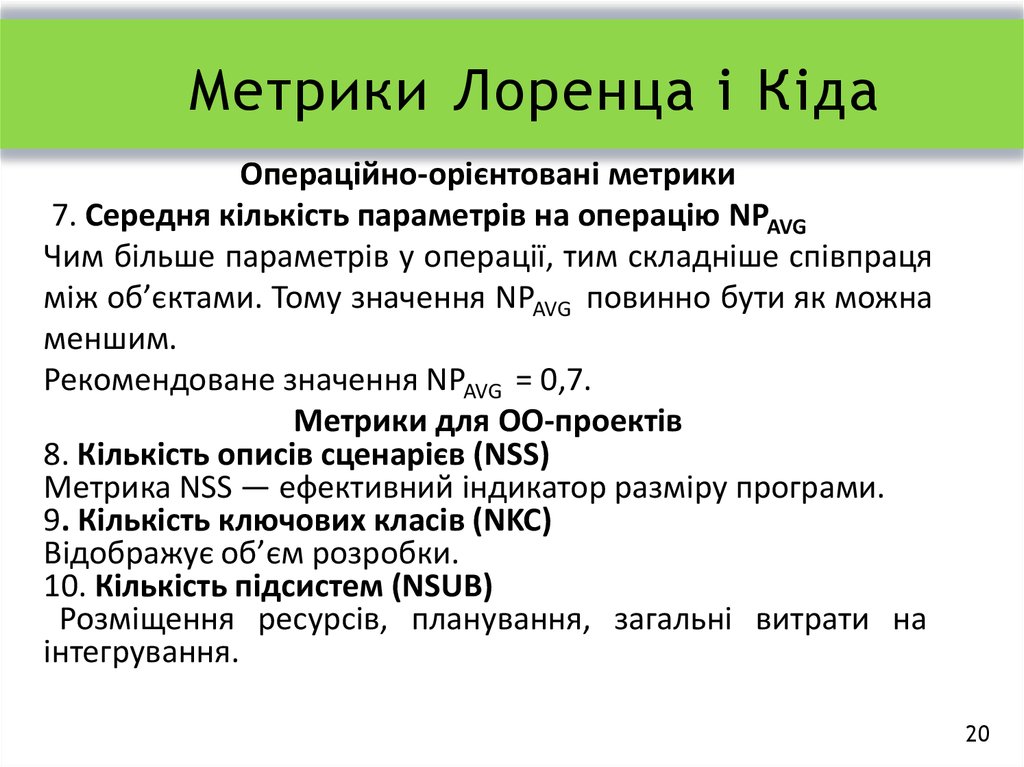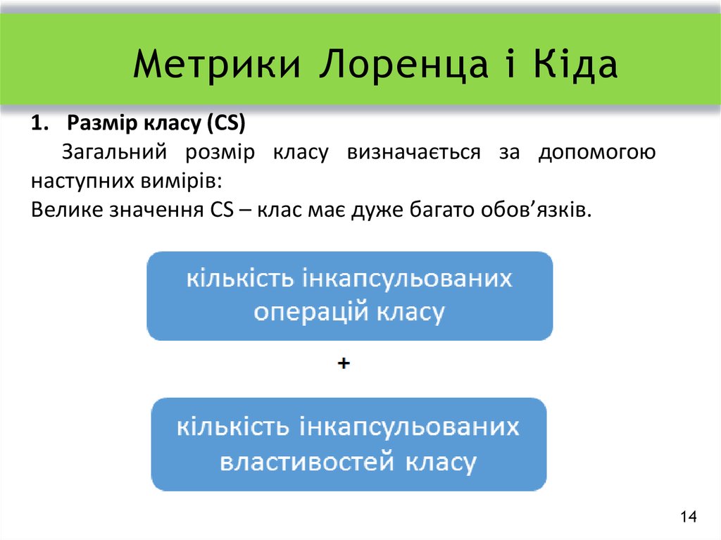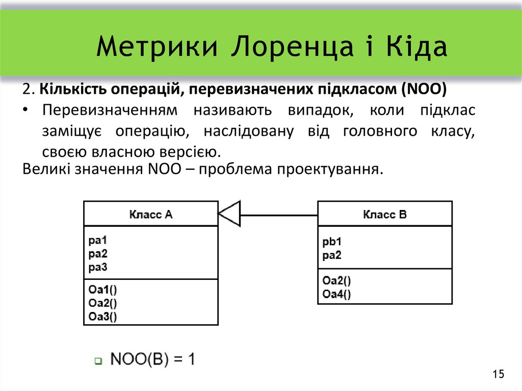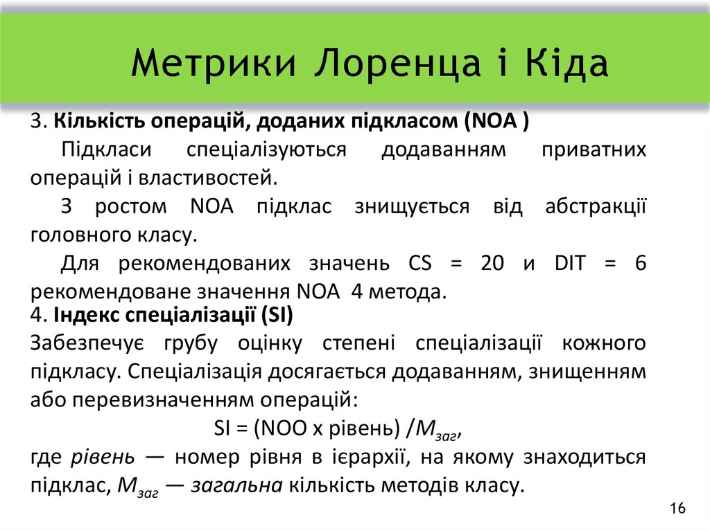 Метрики Чидамбера і Кемерера6. Недолік зв’язаності в методах (LCOM) – дозволяє оцінити
