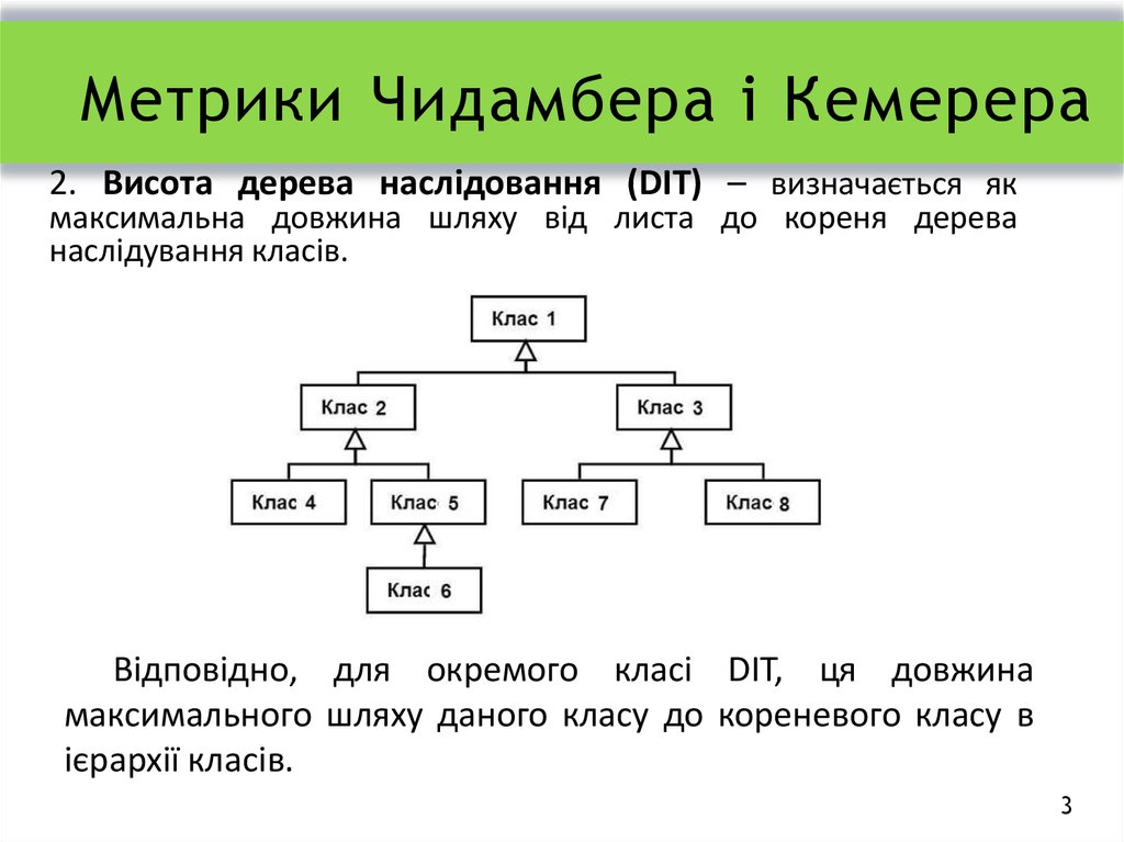 Метрики Чидамбера і Кемерера2. Висота дерева наслідовання (DIT) – визначається як