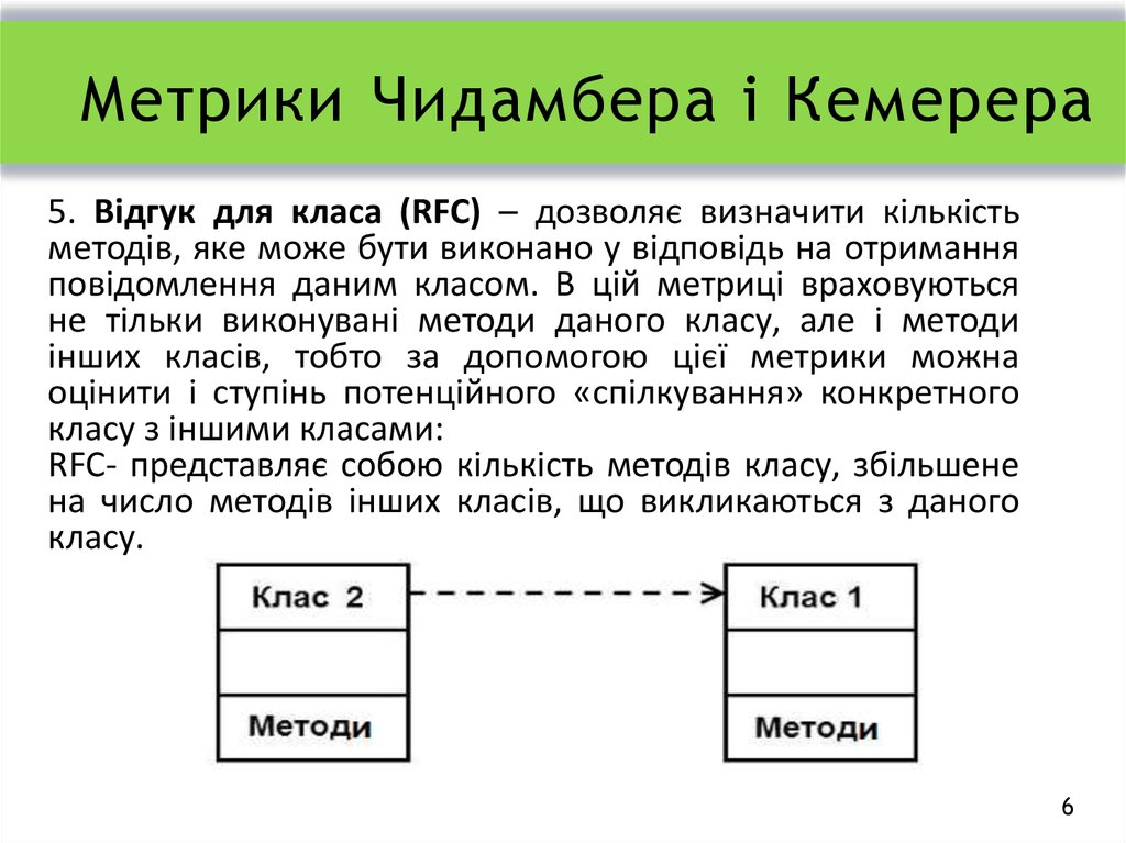 Метрики Чидамбера і Кемерера5. Відгук для класа (RFC) – дозволяє визначити кількість