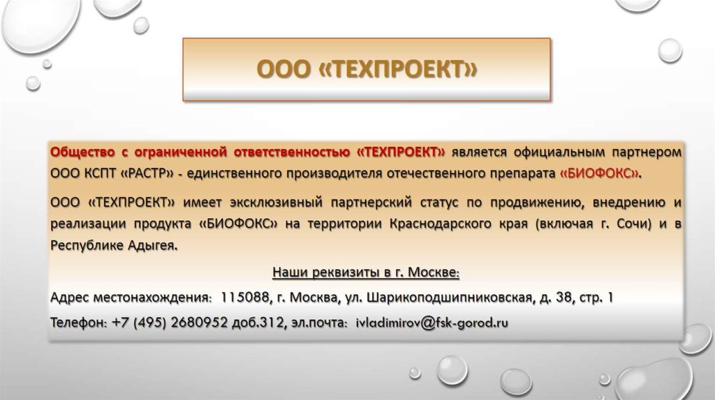 Природный биорегулятор Биофокс. ООО "Техпроект"