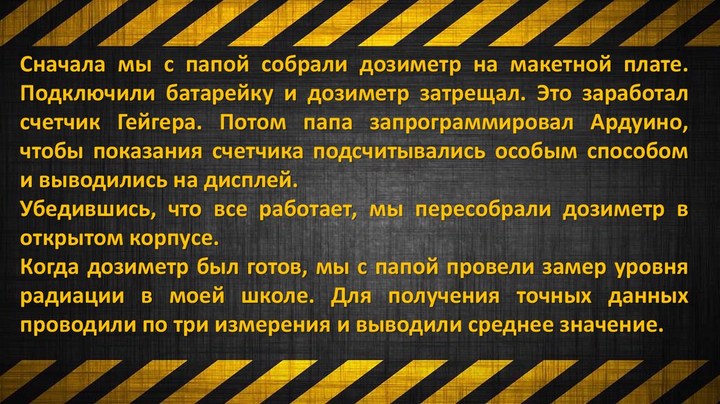 Когда дозиметр был готов, мы с папой провели замер уровня