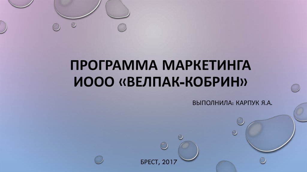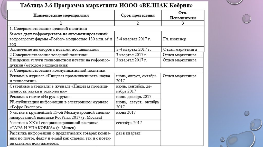ПРОГРАММА МАРКЕТИНГАИООО «ВЕЛПАК-КОБРИН»