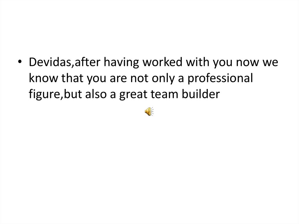 • Devidas,after having worked with you now weknow that you are not only a professional