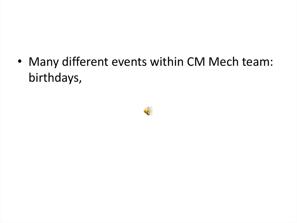 • Many different events within CM Mech team:birthdays,