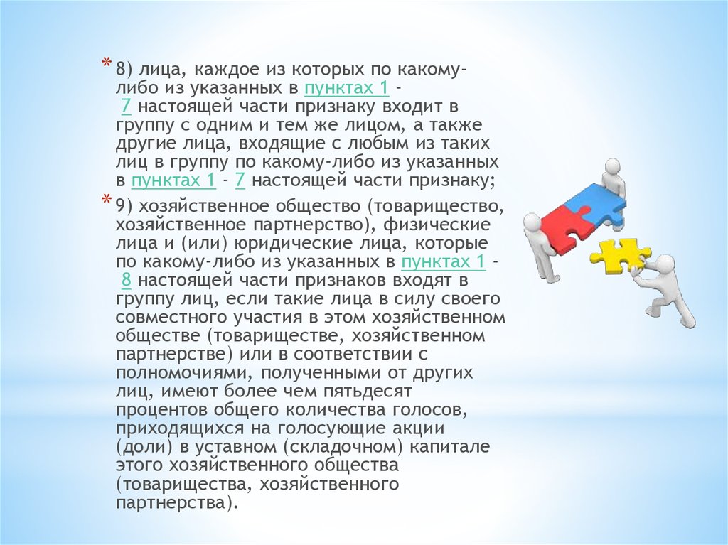 * 8) лица, каждое из которых по какому-либо из указанных в пунктах 1 7 настоящей части признаку входит в