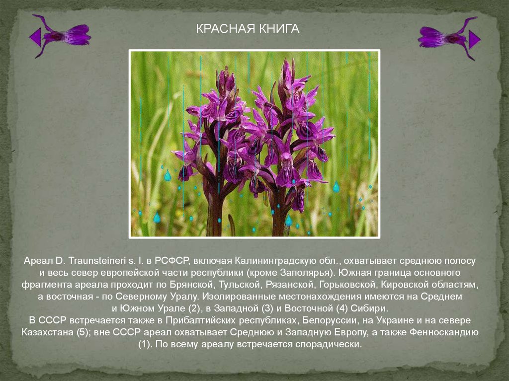 КРАСНАЯ КНИГААреал D. Traunsteineri s. l. в РСФСР, включая Калининградскую обл., охватывает среднюю полосу