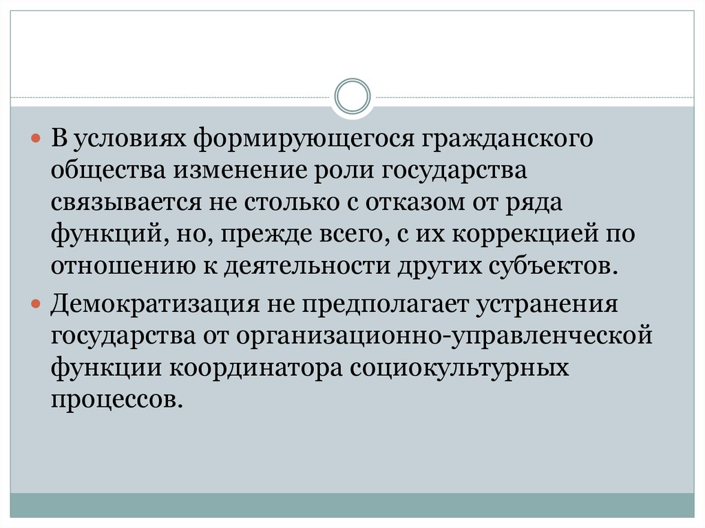 В условиях формирующегося гражданскогообщества изменение роли государства
