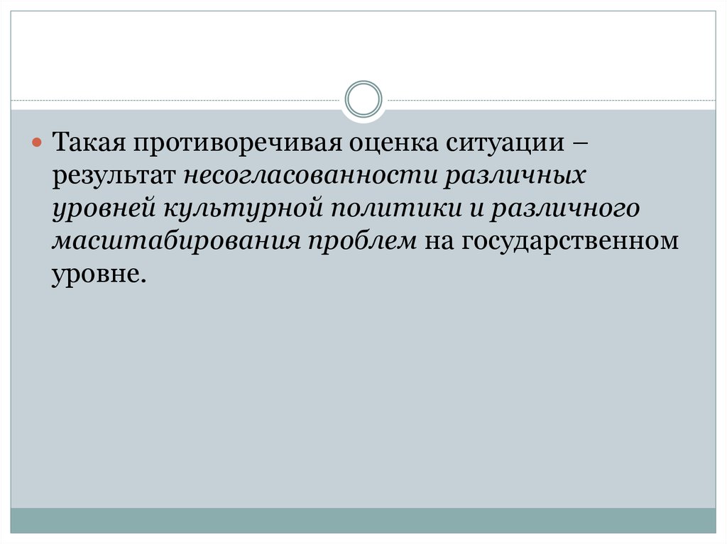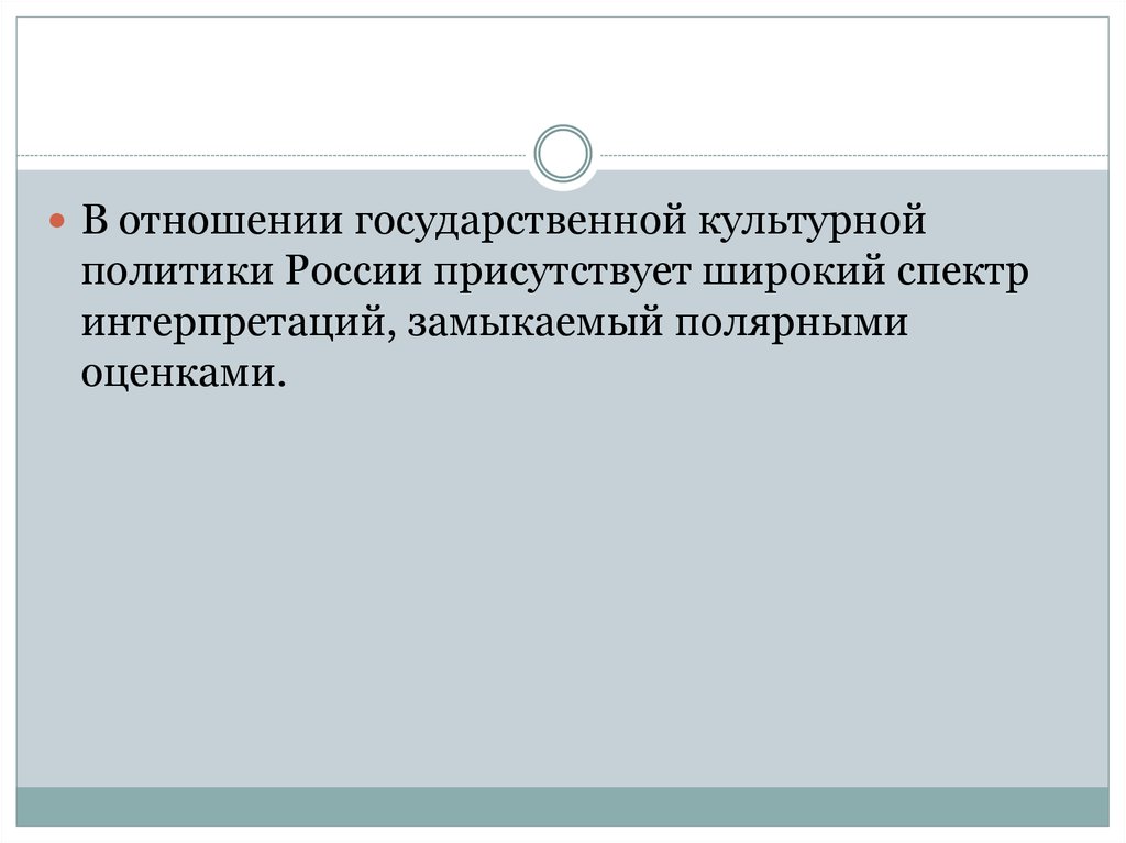 В отношении государственной культурнойполитики России присутствует широкий спектр