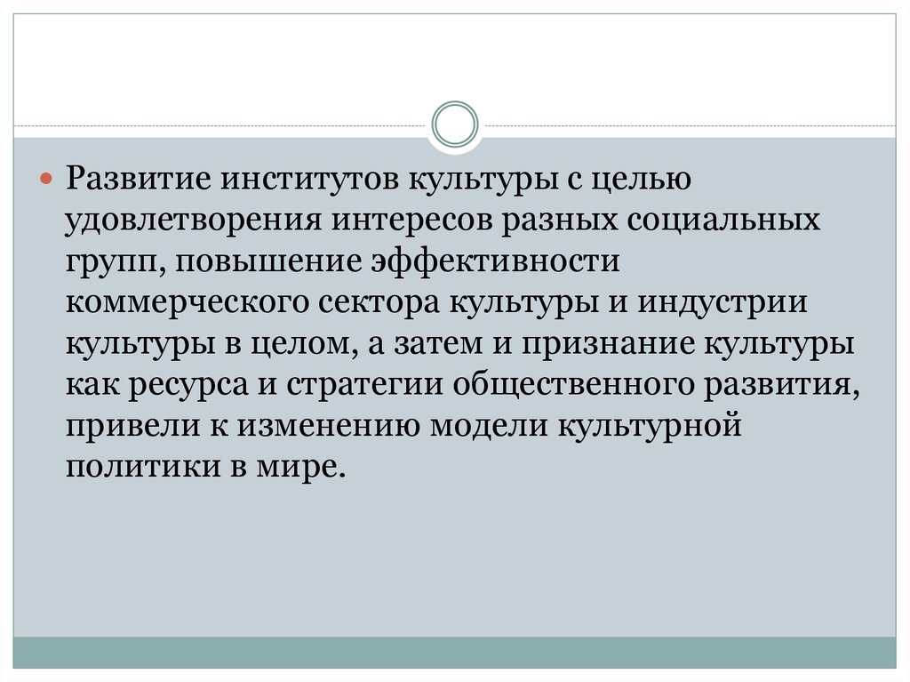 Развитие институтов культуры с цельюудовлетворения интересов разных социальных