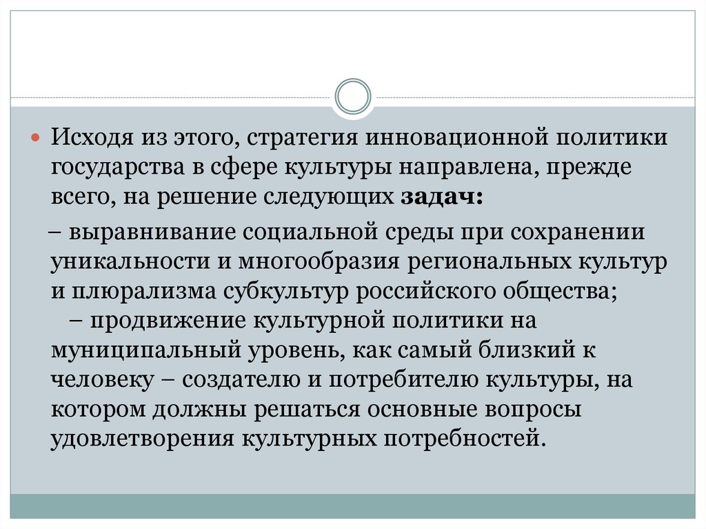 Исходя из этого, стратегия инновационной политикигосударства в сфере культуры направлена, прежде