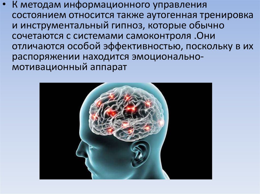 • К методам информационного управлениясостоянием относится также аутогенная тренировка