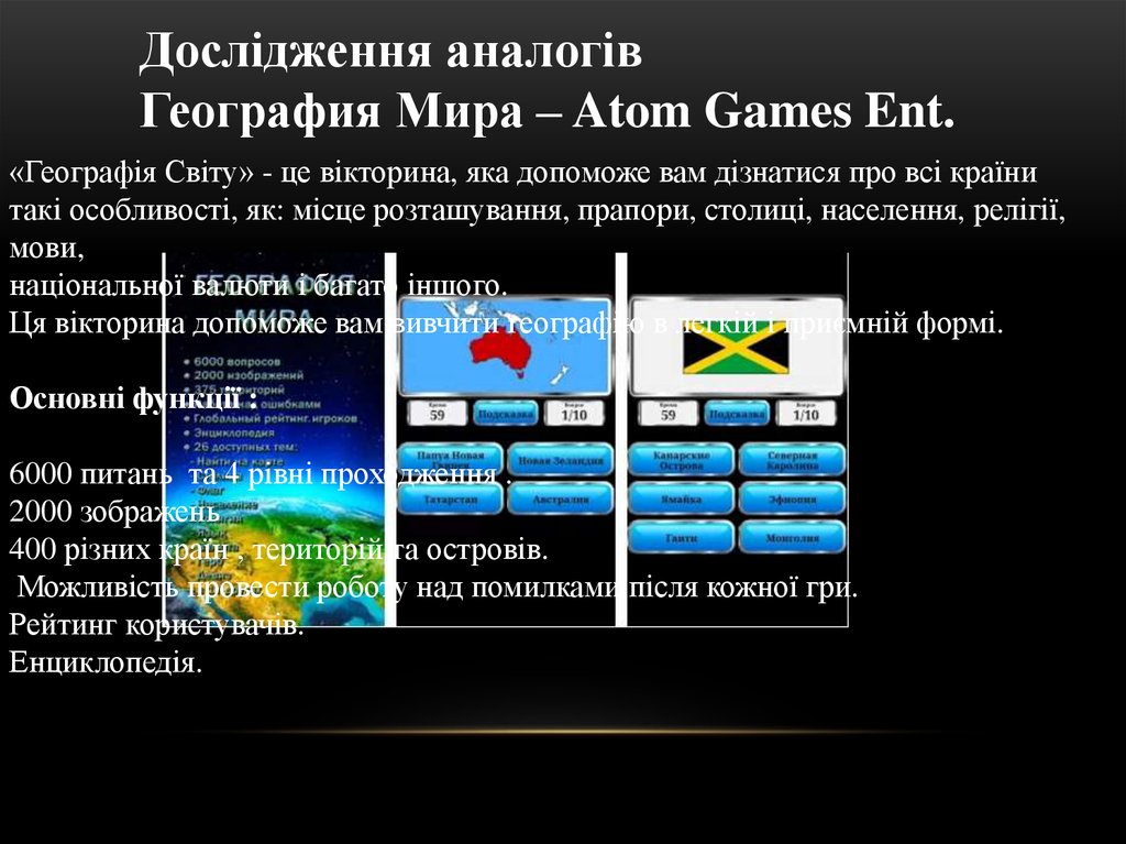Дослідження аналогівГеография Мира – Atom Games Ent.
