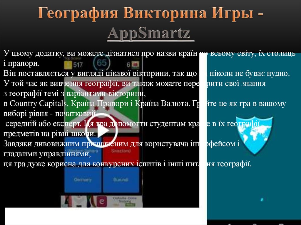 ця гра дуже корисна для конкурсних іспитів і інші питання географії.