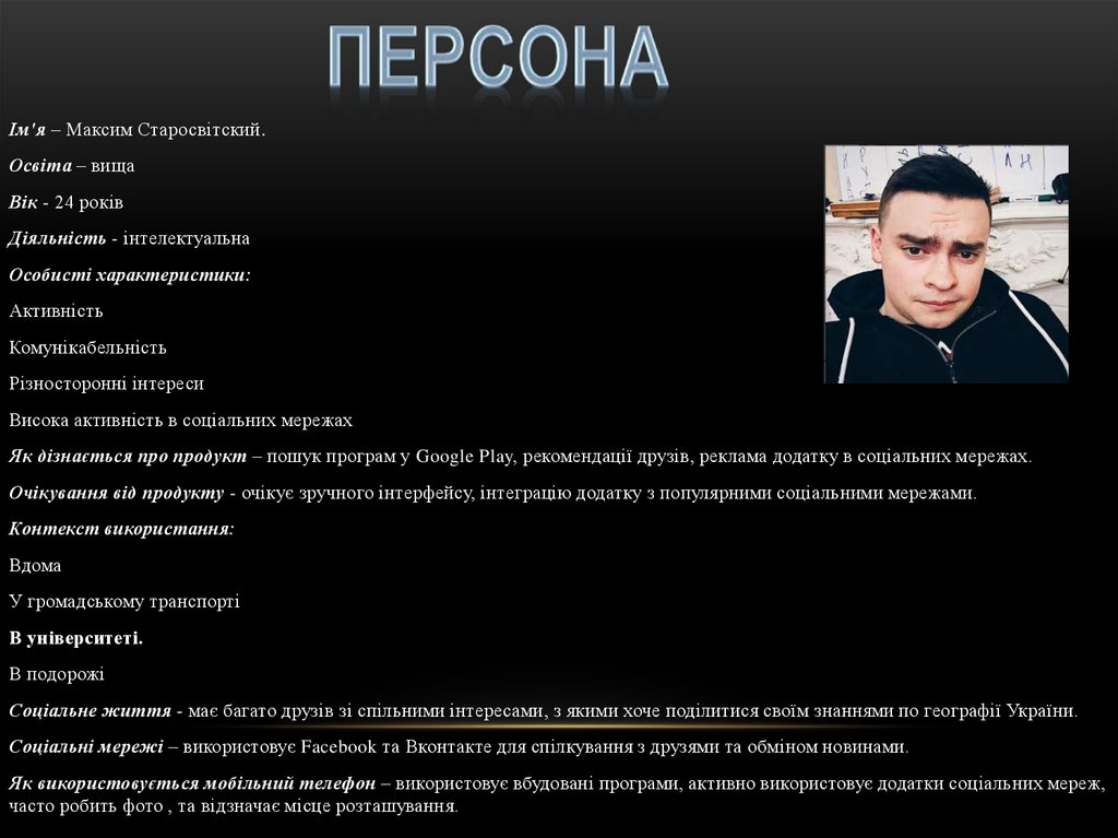 Ім'я – Максим Старосвітский.Освіта – вища