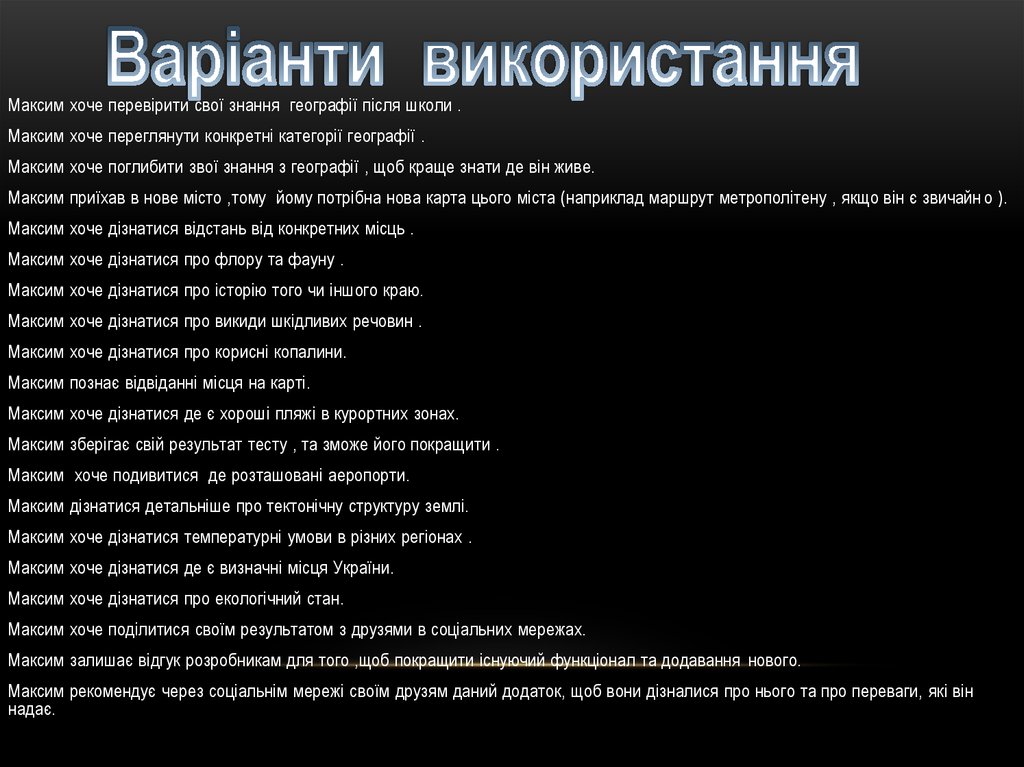 Максим хоче перевірити свої знання географії після школи .Максим хоче переглянути конкретні категорії географії .