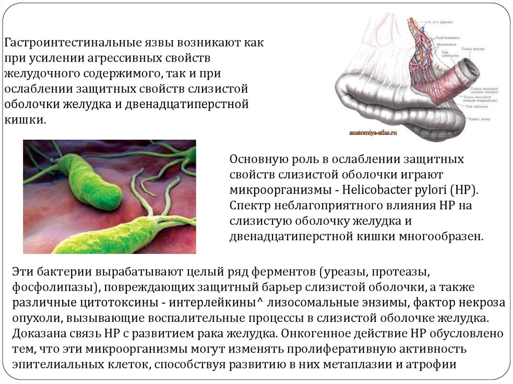 Гастроинтестинальные язвы возникают какпри усилении агрессивных свойств
