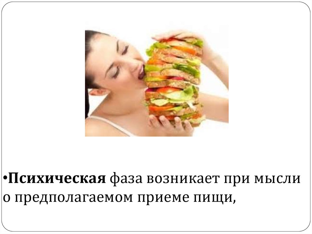 •Психическая фаза возникает при мыслио предполагаемом приеме пищи,