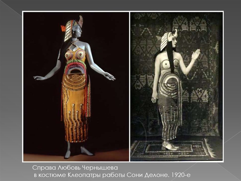 Справа Любовь Чернышевав костюме Клеопатры работы Сони Делоне. 1920-е