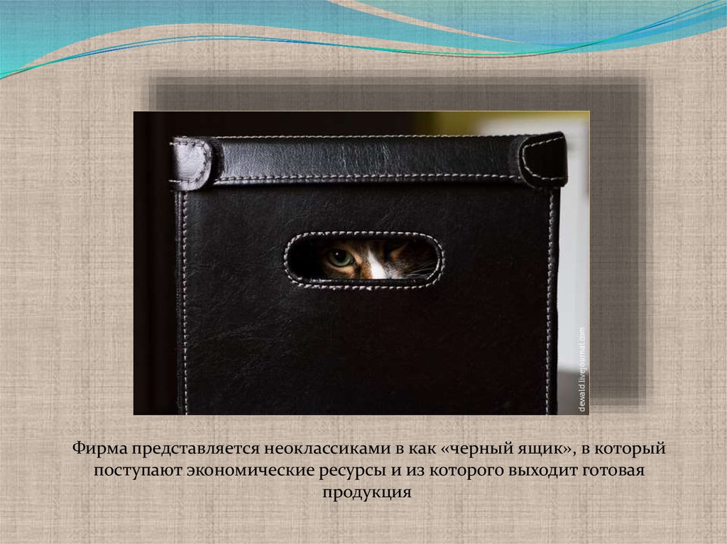 Фирма представляется неоклассиками в как «черный ящик», в которыйпоступают экономические ресурсы и из которого выходит готовая