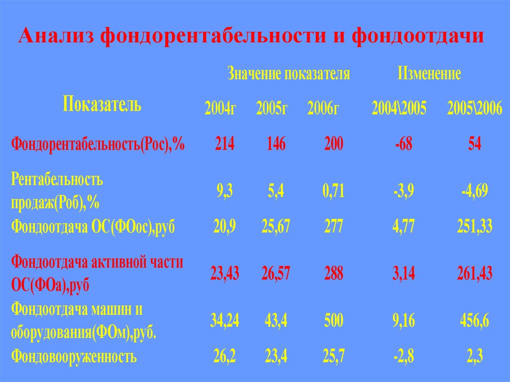 Анализ фондорентабельности и фондоотдачиЗначение показателя