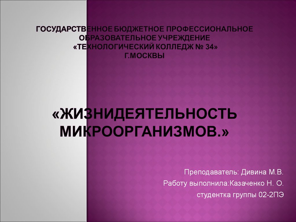 1. Государственное Бюджетное Профессиональное Образовательное Учреждение «Технологический колледж № 34» г.Москвы «Жизнидеятельность микро