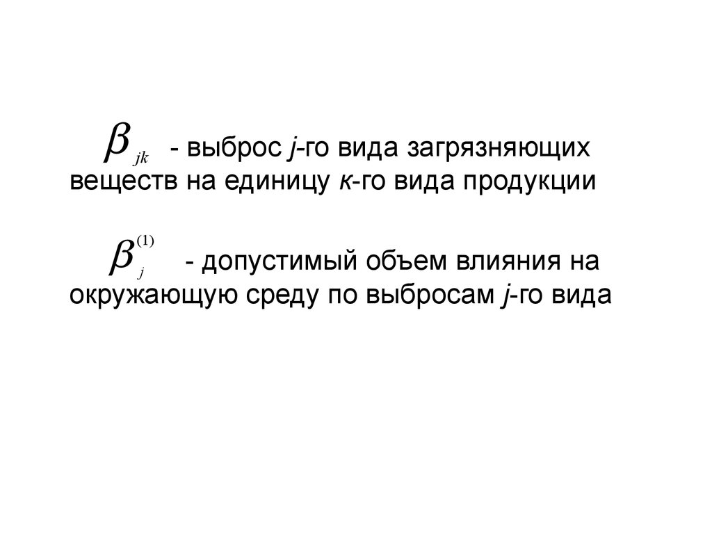 - выброс j-го вида загрязняющихвеществ на единицу к-го вида продукции