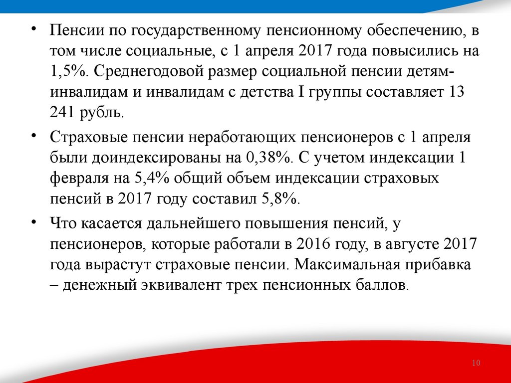 • Пенсии по государственному пенсионному обеспечению, втом числе социальные, с 1 апреля 2017 года повысились на