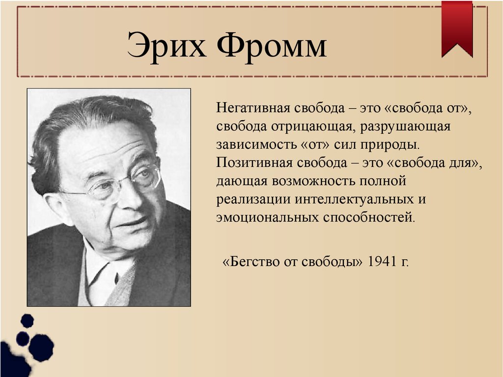 Эрих ФроммНегативная свобода – это «свобода от»,
