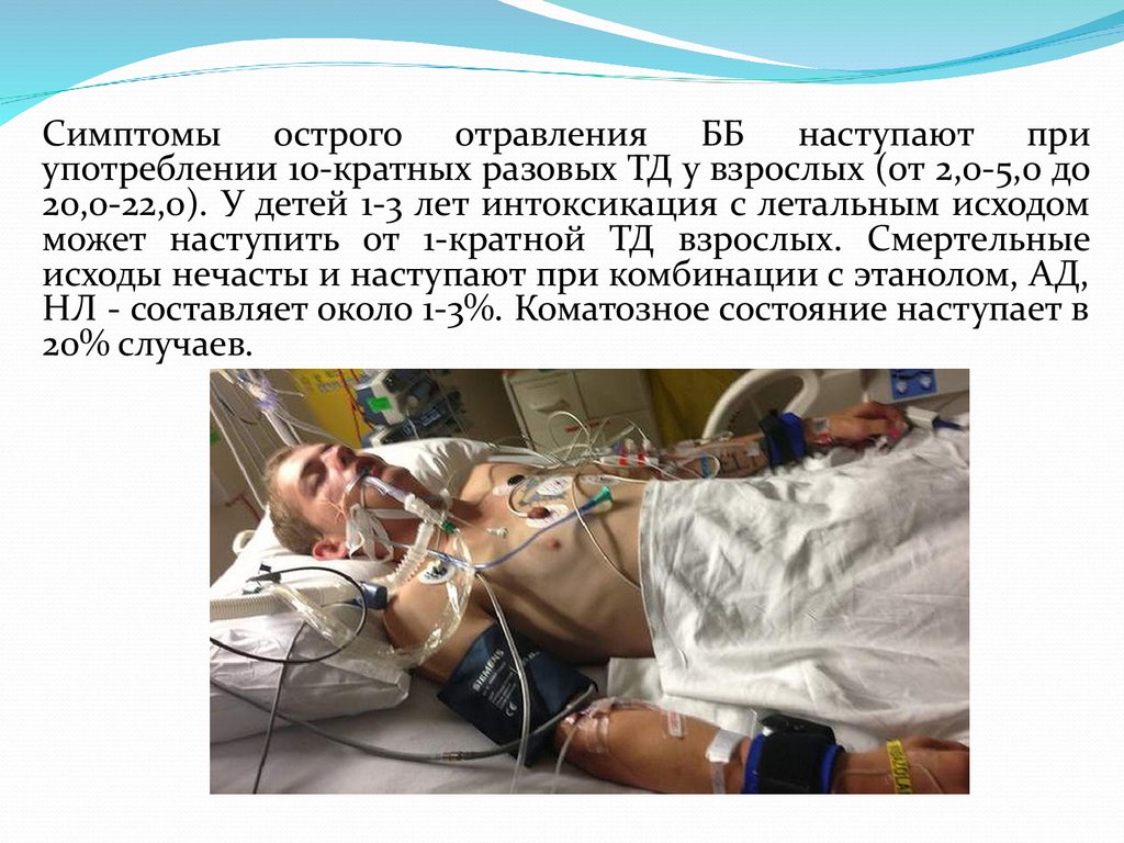 Симптомы острого отравления ББ наступают приупотреблении 10-кратных разовых ТД у взрослых (от 2,0-5,0 до