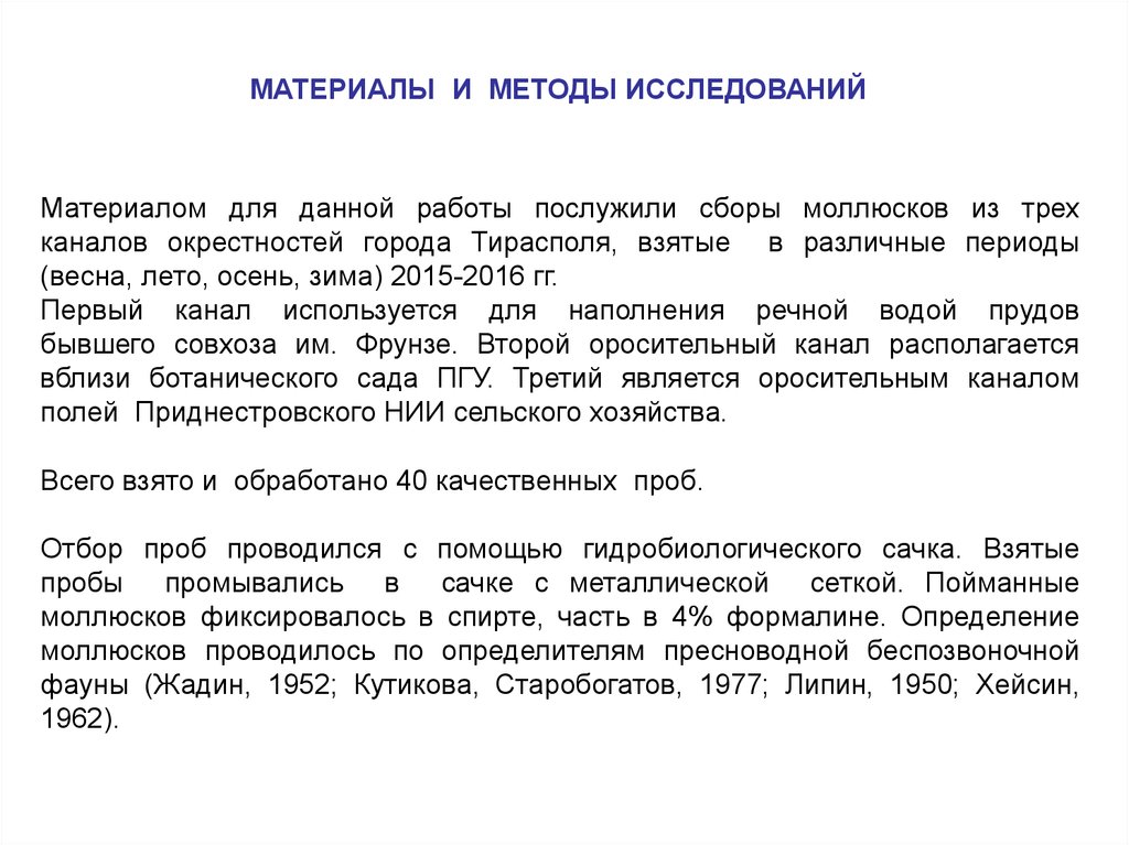 фауны (Жадин, 1952; Кутикова, Старобогатов, 1977; Липин, 1950; Хейсин,