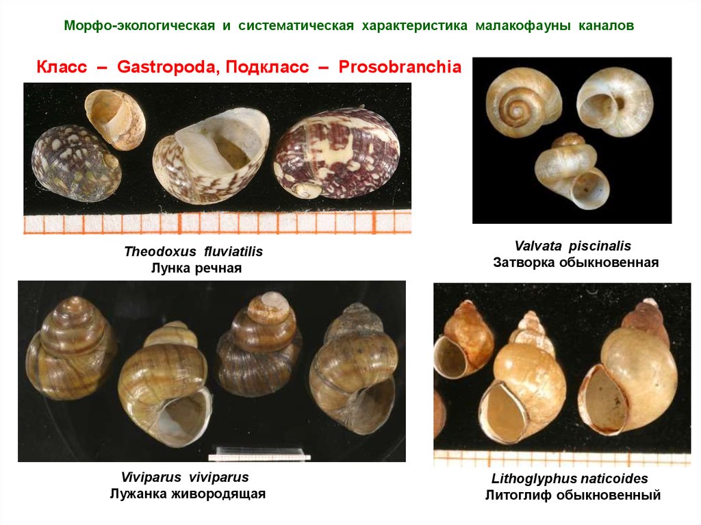 Морфо-экологическая и систематическая характеристика малакофауны каналовКласс – Gastropoda, Подкласс – Prosobranchia