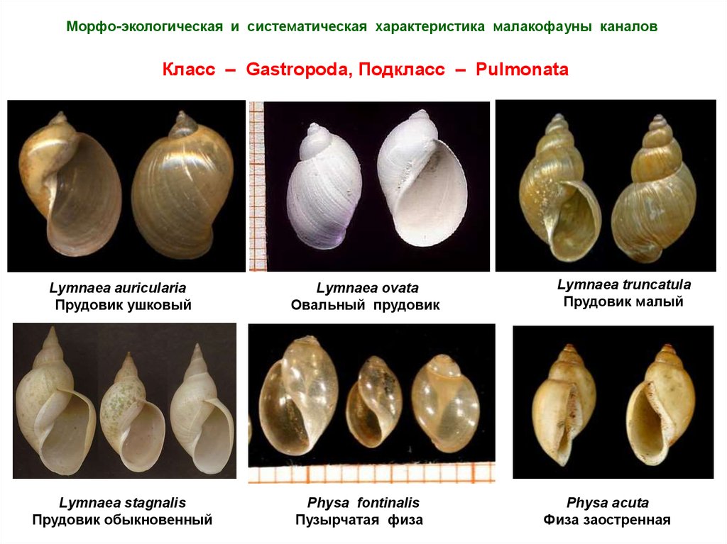 Морфо-экологическая и систематическая характеристика малакофауны каналовКласс – Gastropoda, Подкласс – Pulmonata
